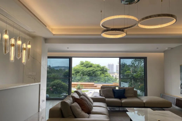 不一樣的燈光場景營造不同的燈光氛圍,更是為主人帶來不一樣的心情,柔和的燈光更容易使人安靜下來...客廳設計了明亮模式、觀影模式、休閑模式等,為主人提供多樣的氛圍;